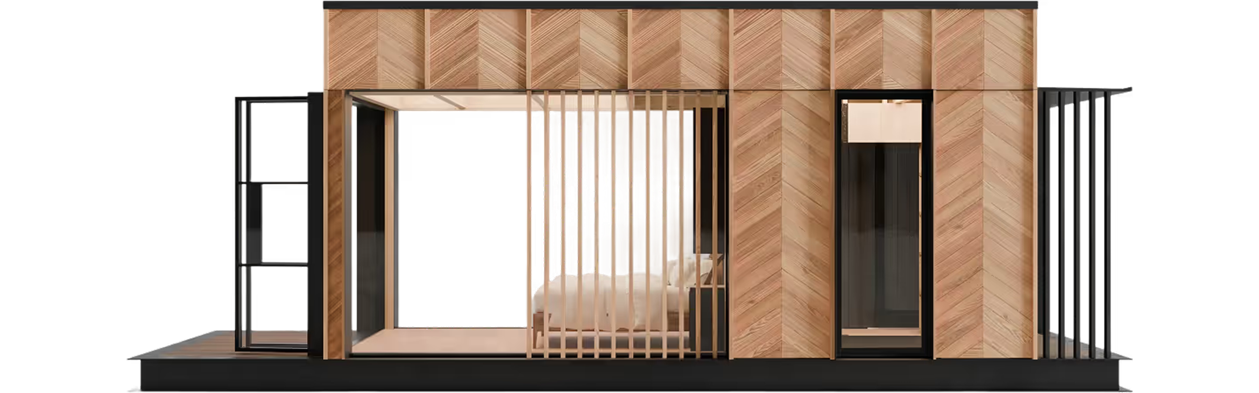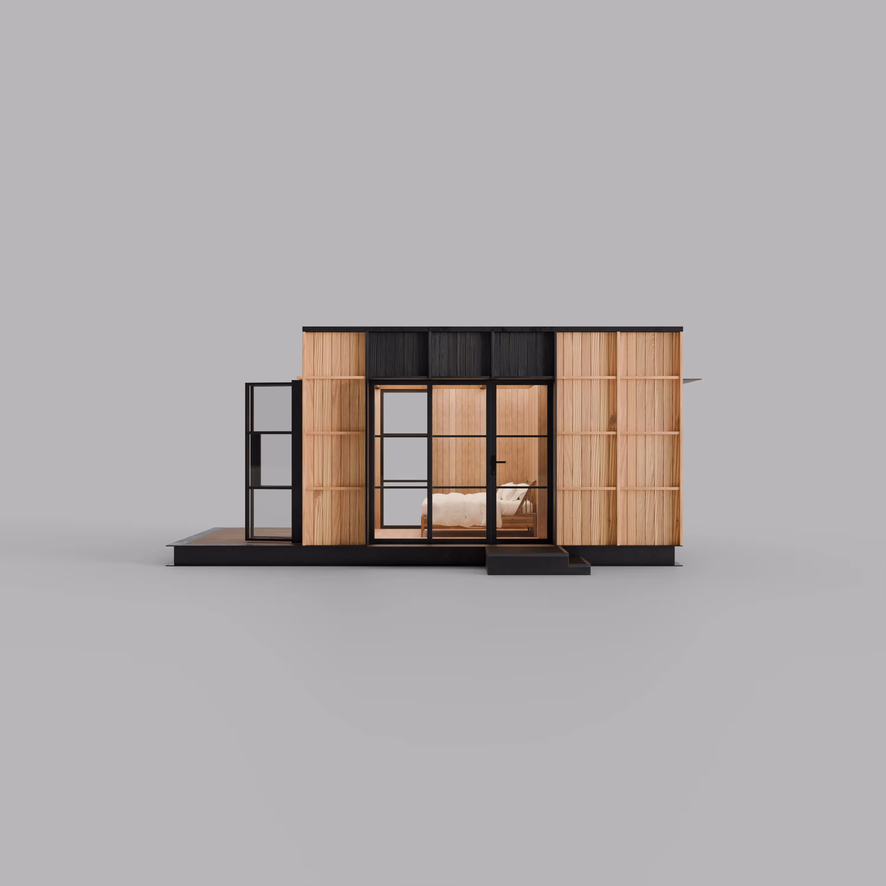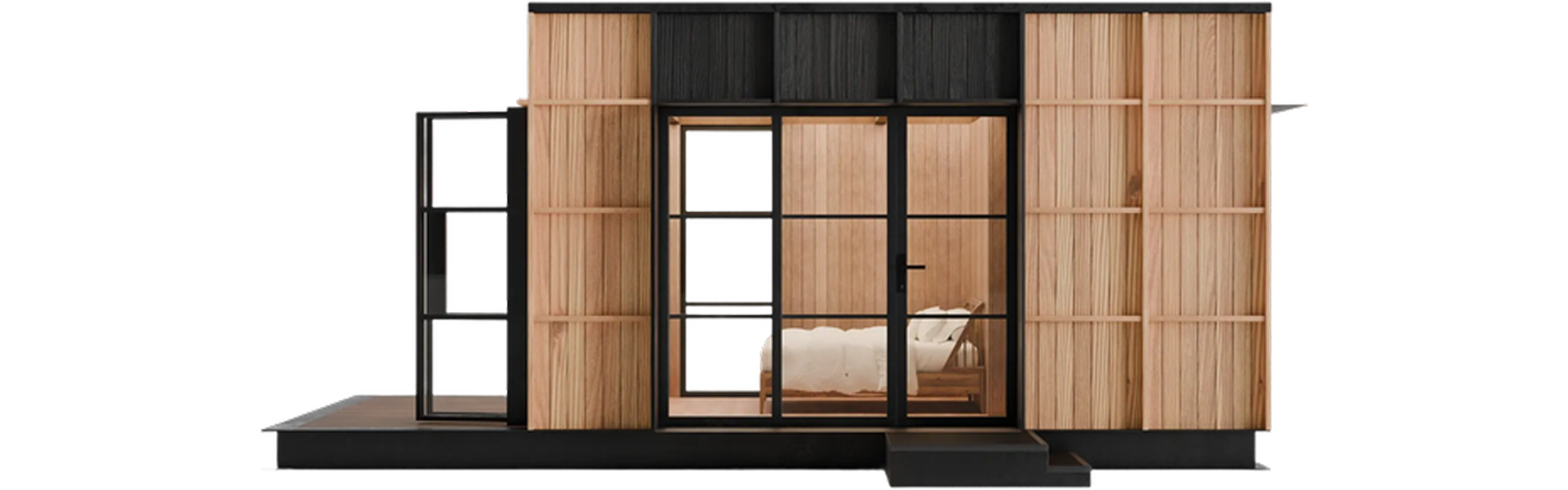 Big adventures start in our most compact package. Shelter S1 packs all the essentials you need in a cozy modern cabin.